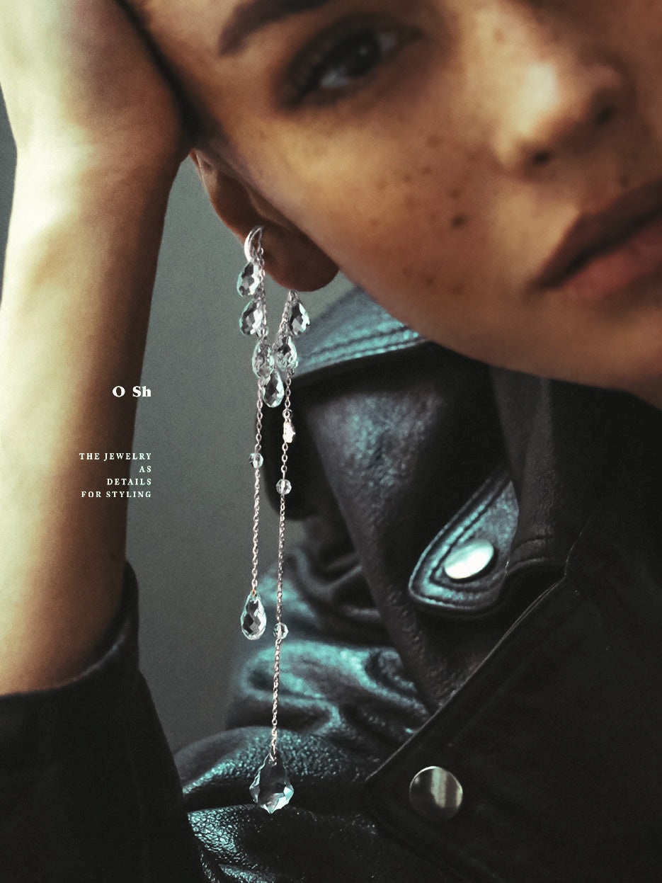 "NAKED CRYSTALS" ASYMMETRICAL EAR SET SILVER