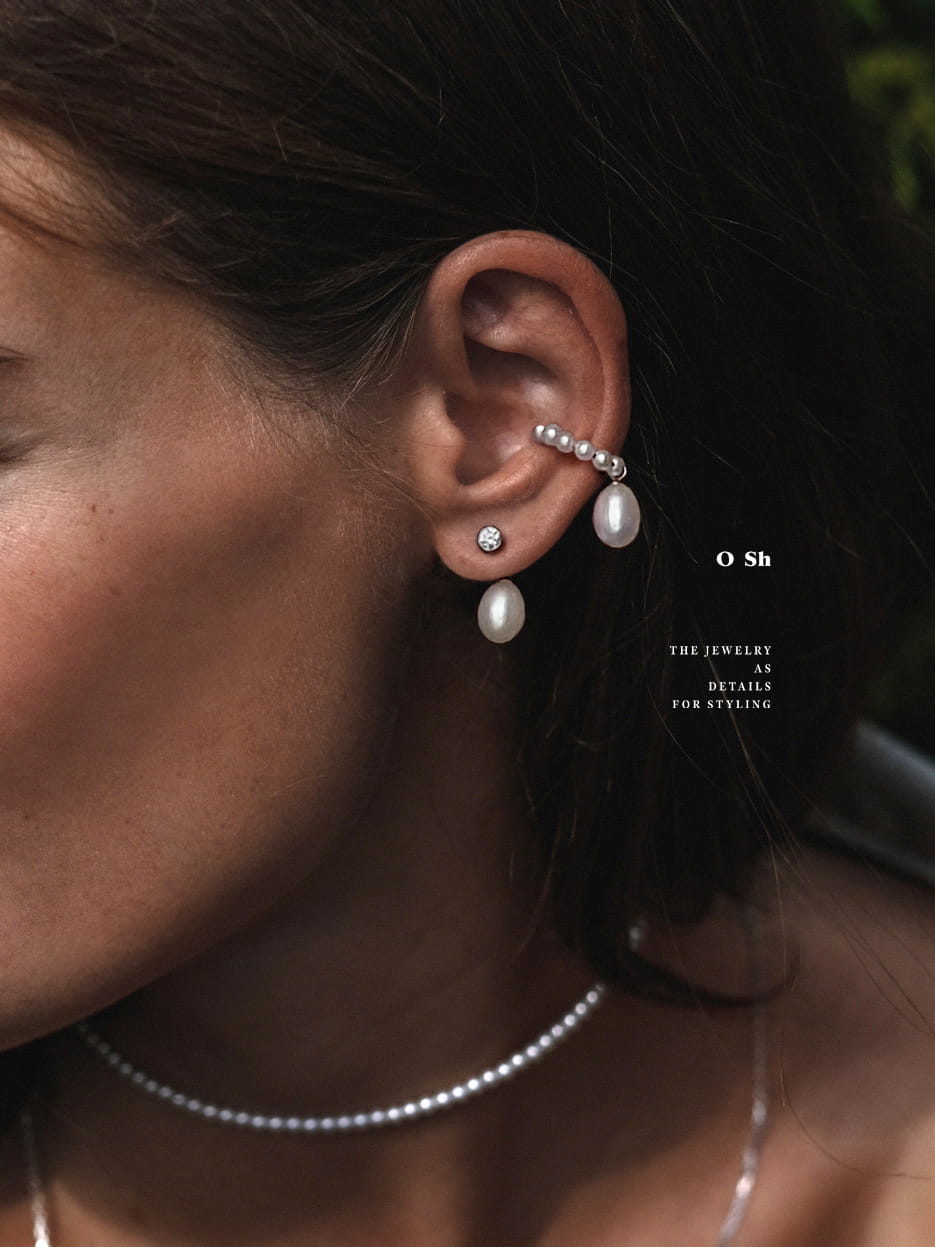 Gümüş kulak seti: "MOONLIT DROPLETS" Küpeler + "MISTDROP" Kıkırdak Küpesi