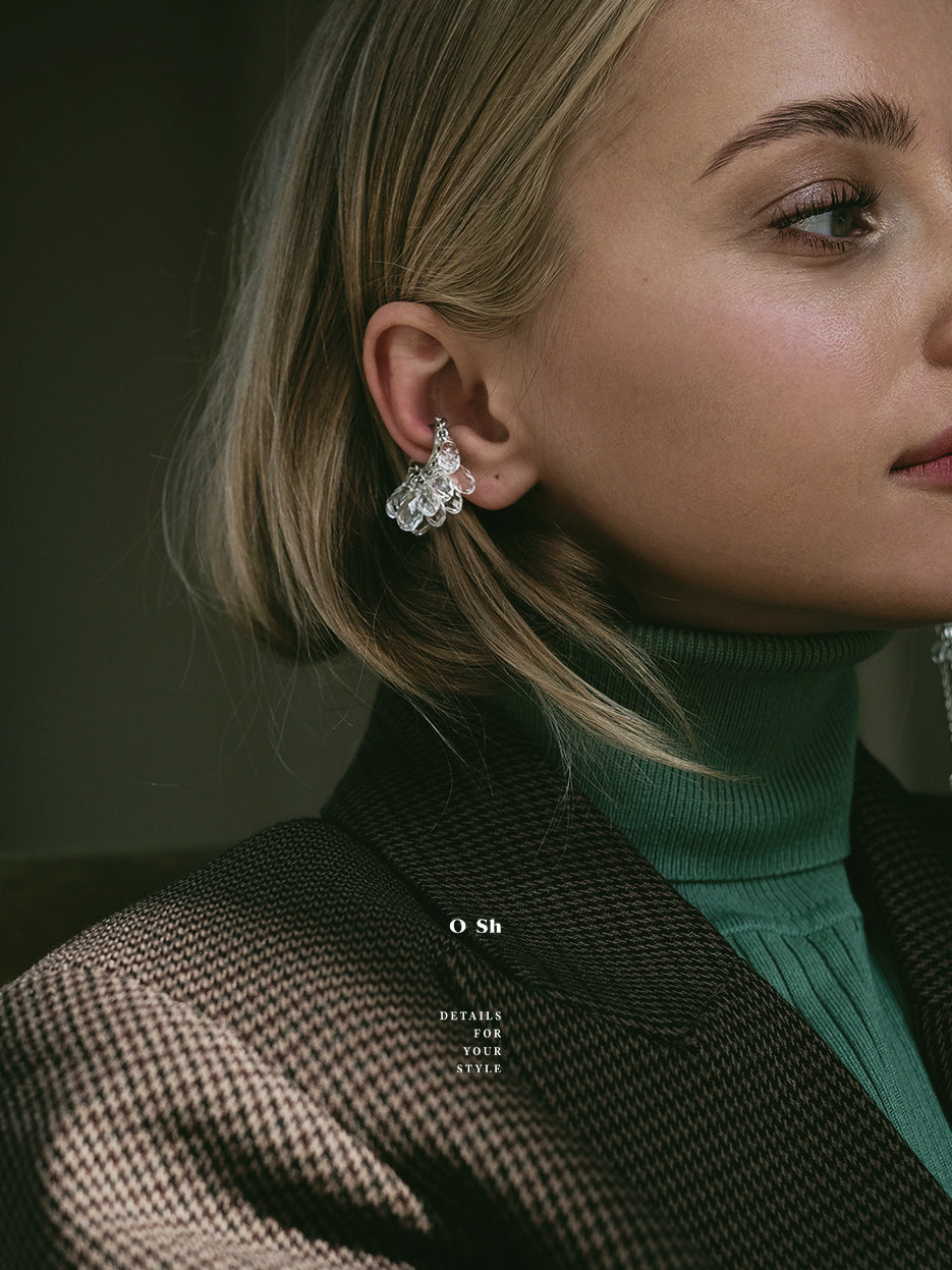 Kristallerle süslenmiş gümüş kıkırdak küpesi.