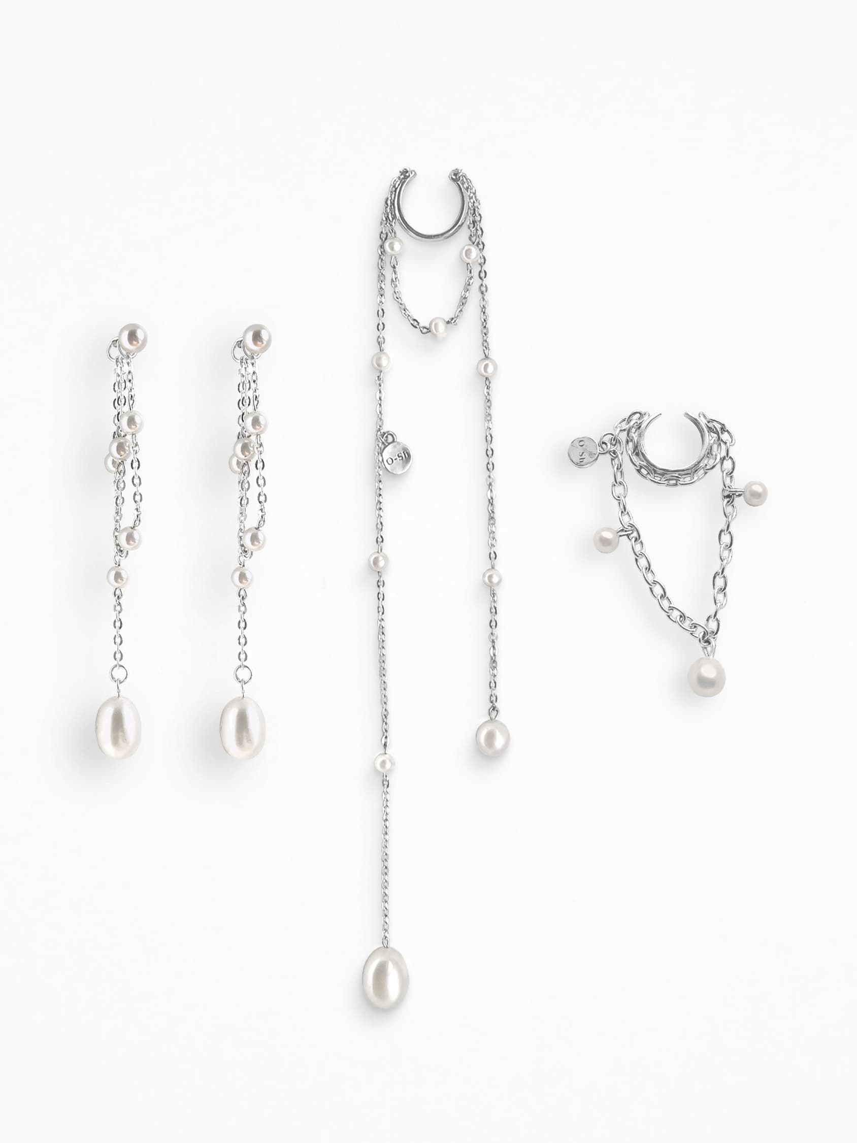Gümüş küpe seti: "DANGLE PEARL" KIKIRDAK KÜPELER + "O PEARL" KÜPELER